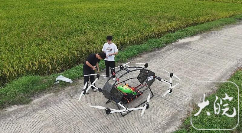 9月12日下午2点左右,怀着忐忑的心情,李邦华带着飞行器来到了村子里的一处稻田旁。在将飞行器完全组装好后,他进行了起飞前最后一次数据调试。“试飞的时候你最好站远点,因为还是有不可控因素存在的,我也不敢确保试飞一定成功。”他提醒大皖新闻记者。