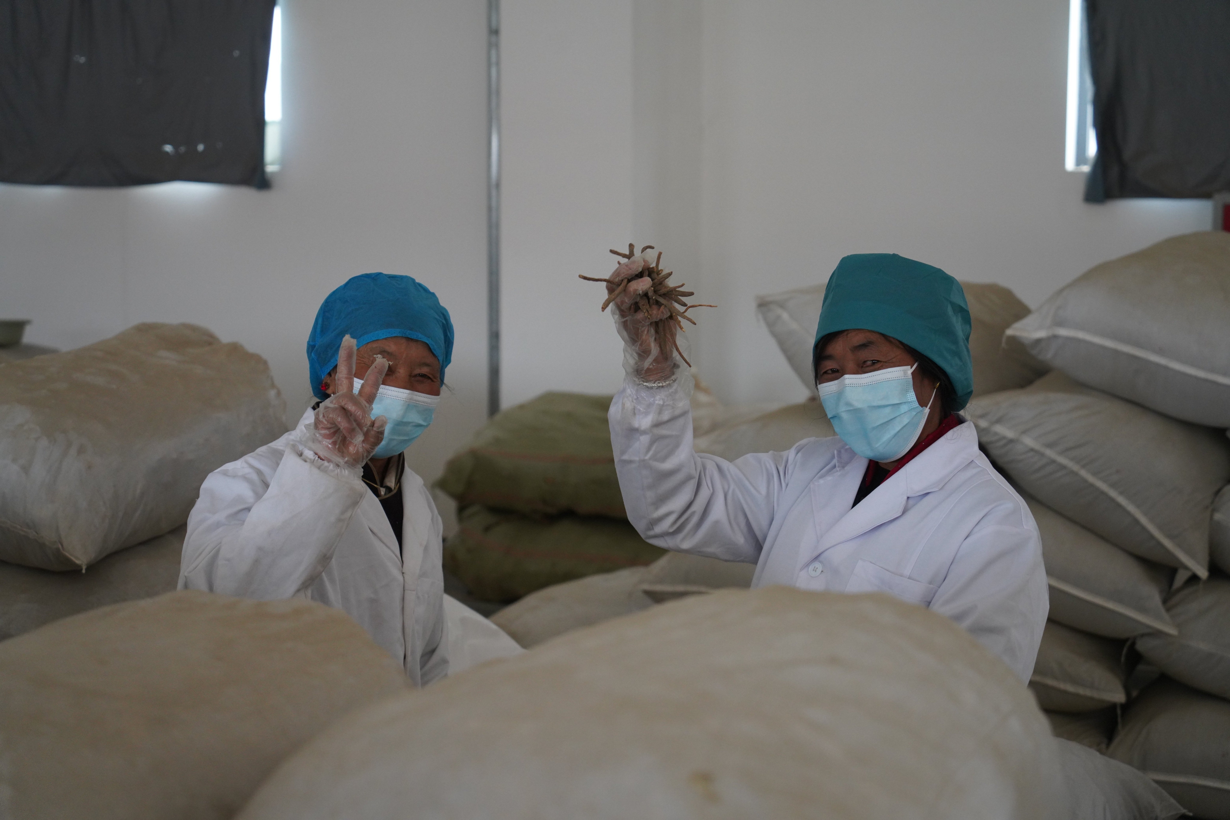 ▲在曲松镇琼嘎村藏药材种植加工专业合作社,当地村民向记者展示藏药材。中国网记者 胡俊 摄