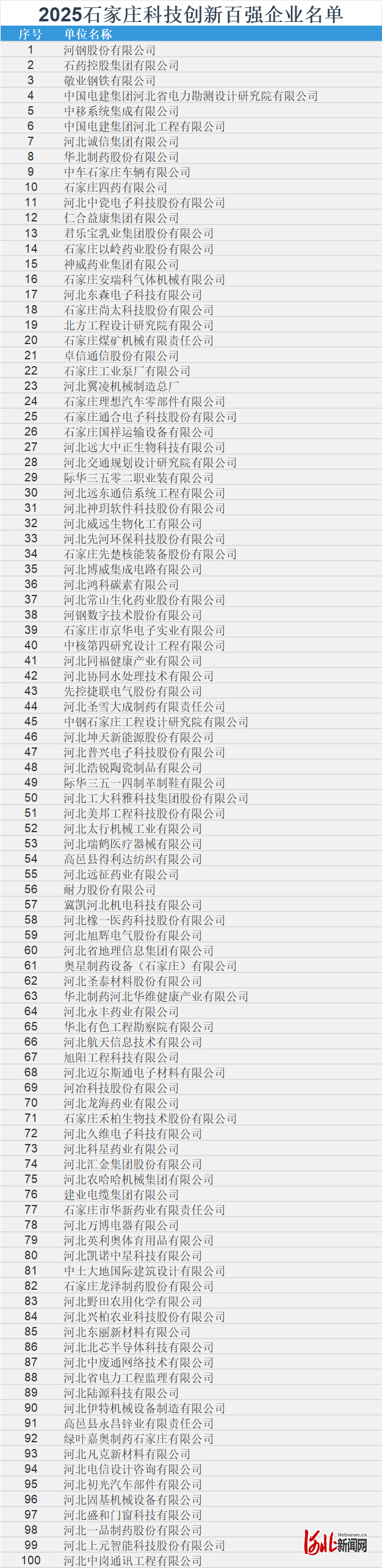 据悉,本次榜单评选参照国际通行惯例,遵循企业自愿申报原则,依据企业2024年度相关经营数据,经市直相关部门和专家严格评审最终确定。榜单呈现了石家庄企业的“硬核”实力与创新风貌。